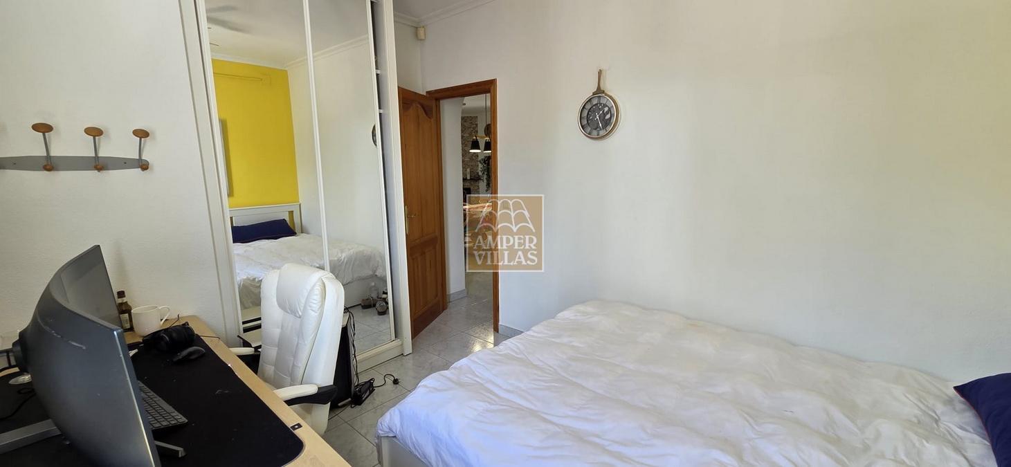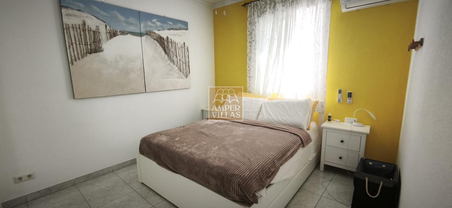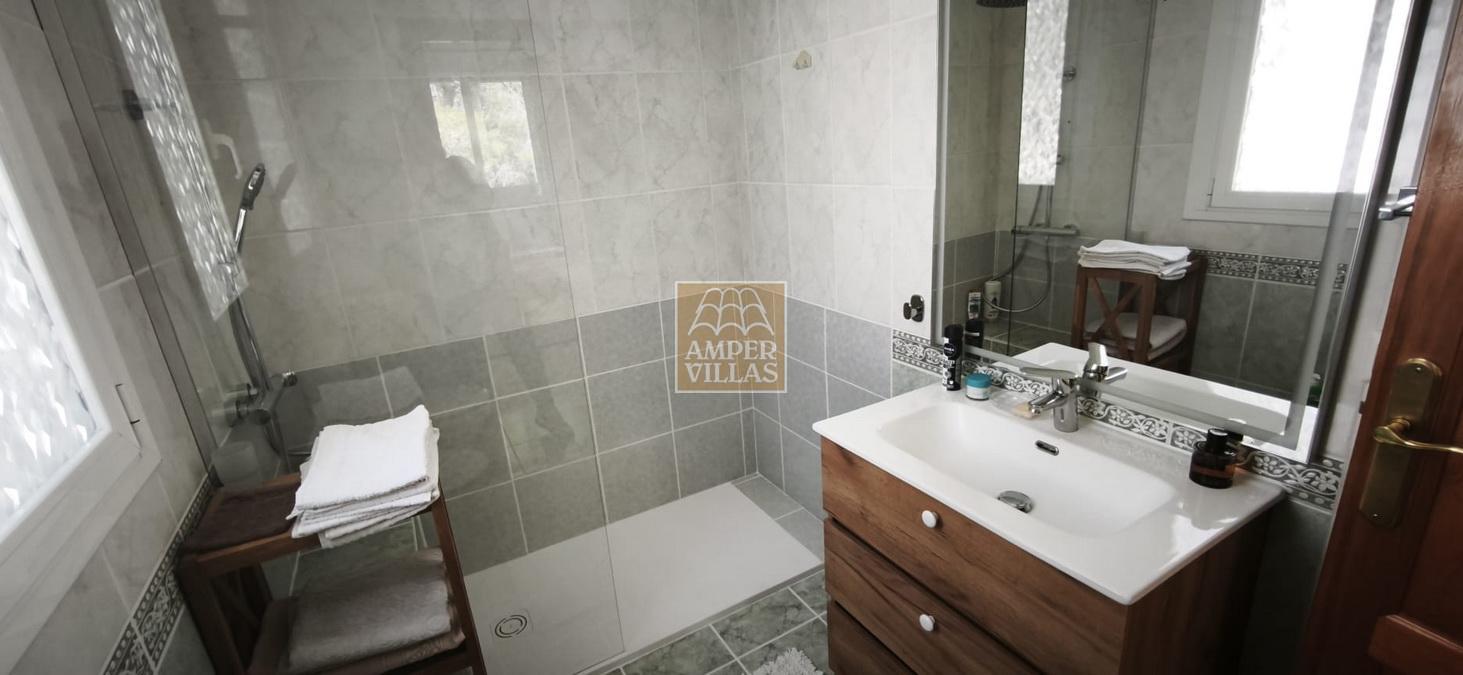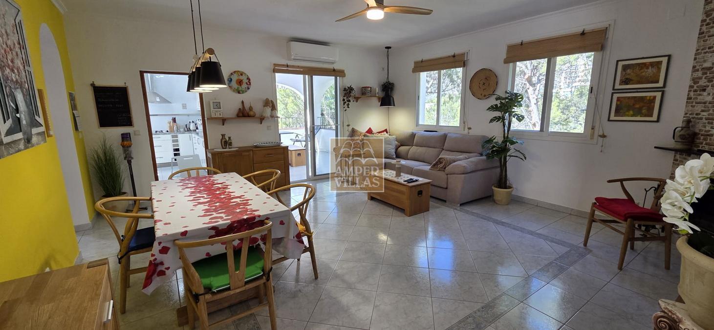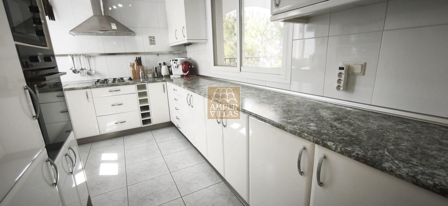 Discover your own private oasis in this beautiful 117.84 m² villa, built in 2005 on a 1,300 m² plot, with a further 117.84 m² available for development. Situated in the quietest and most attractive part of Altea, around 300 metres from the golf courses, this property offers the perfect blend of comfort and elegance. It features an entrance with an automatic gate and private parking for three cars. The house comprises an entrance hall, three bedrooms and two bathrooms, including the master bedroom with an en-suite bathroom, a covered terrace, a private swimming pool, an alarm system, air conditioning and heat pump heating. The built and furnished area of the ground floor is 117.84 m², whilst the lower floor, which is completely separate and of the same size, on the same level as the swimming pool, is yet to be built, but we provide the full project plans. One of the villa’s key strengths, being completely surrounded by greenery, is its privacy and tranquillity. The villa is sold fully furnished.